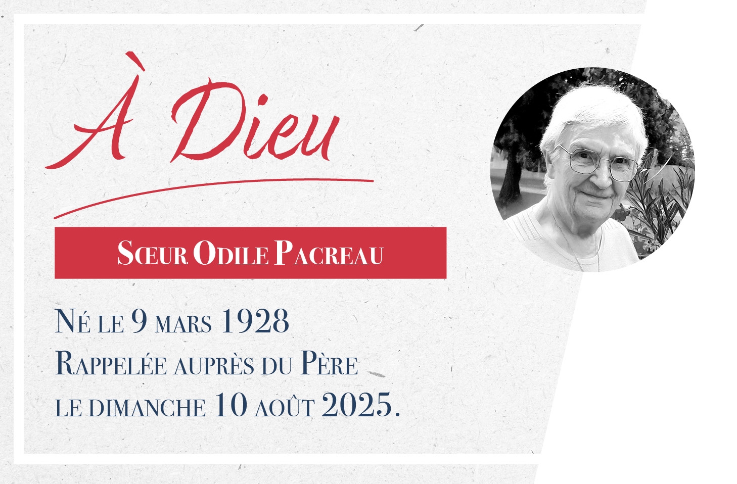 À Dieu Soeur Odile Pacreau