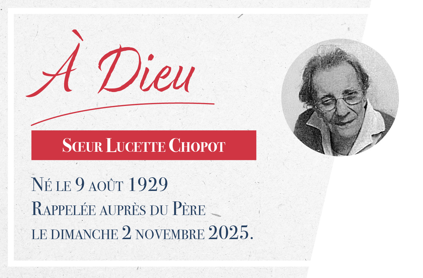 À Dieu, Sr Lucette CHOPOT