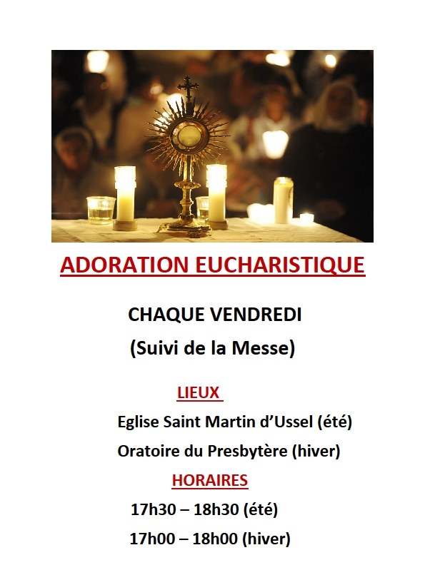 Ussel accueille désormais, avec joie et action de grâces, l'adoration Eucharistique hebdomadaire... Renseignements : Presbytère d'Ussel - 06.58.19.3149