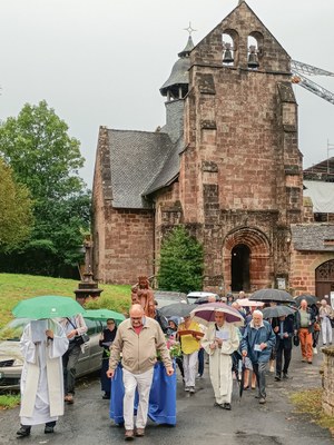 Le lendemain 8 septembre, fête de la Nativité de Marie, quelques courageux se sont rassemblés dès 8h30, à l'église d'Objat pour une marche jusqu'au sanctuaire marial de Saint-Cyr-la-Roche (deux kilomètres). Puis rejoints par les paroissiens, la procession s'est élancée à 10h de l'église vers la chapelle où a eu lieu la messe, concélébrée par trois prêtres de l'Espace missionnaire (les Pères Louis Brossollet, Michel Jousseaume, Jean François Deroy).