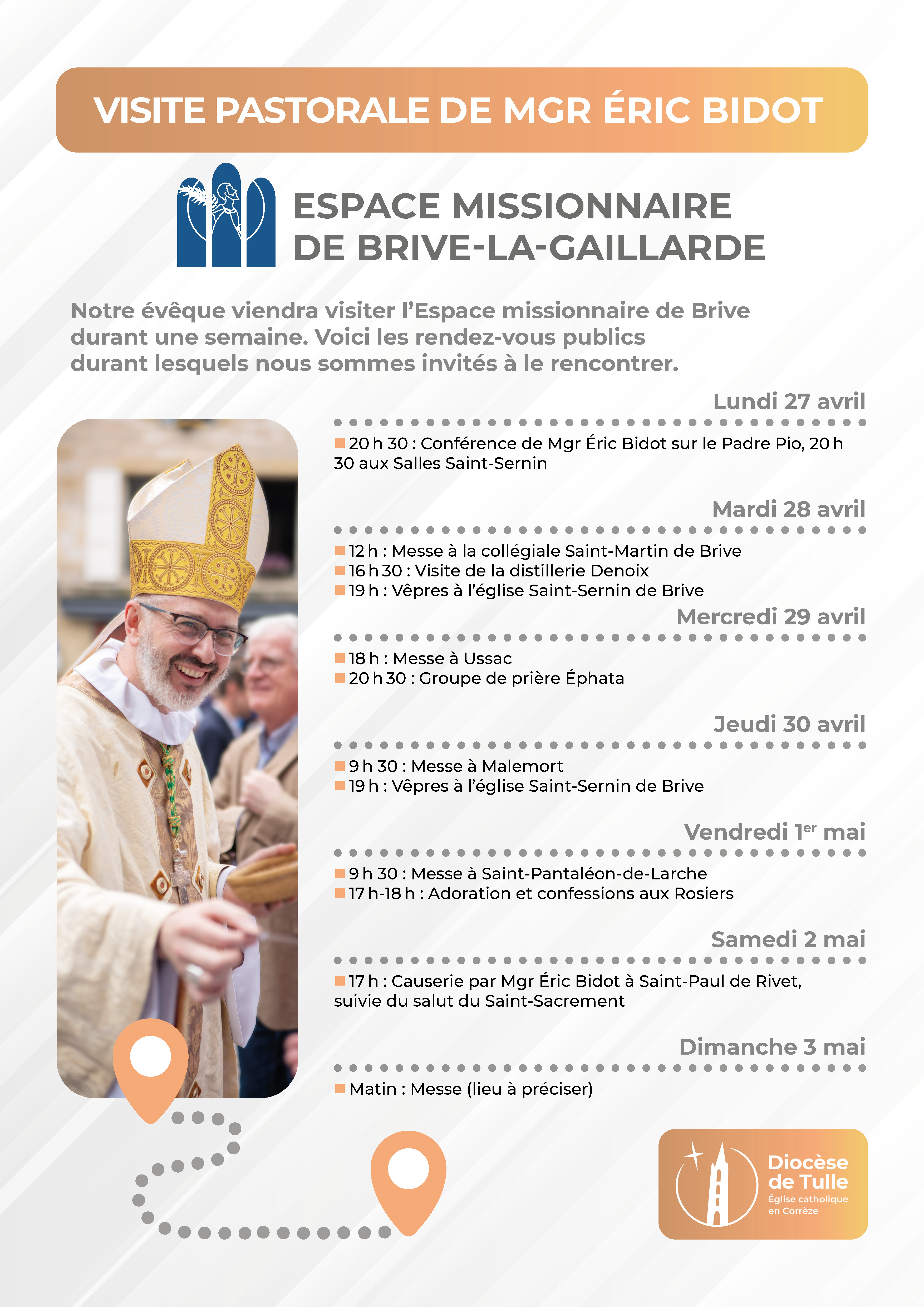 Notre évêque se rendra dans l'Espace missionnaire de Brive du lundi 27 avril au dimanche 3 mai 2026.
